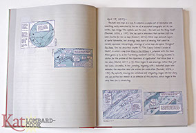 Along with the exhibition, I also created four books that contain, and enact, the written portion of my PhD. Each book focuses on a particular facet of my research: Comics as a Synthetic Medium, Childhood Memoirs, Mapping Autobiography, and Media Specificity in Non-traditional Graphic Narratives. These books are, themselves pieces of practice, where the design is integral to the theories discussed therein. Derrida has said that deconstruction is something that happens within the text, where the manner in which we argue a theory works against the theory itself. This submission was created with that in mind, as I consciously performed deconstruction on form as well as content in my work.